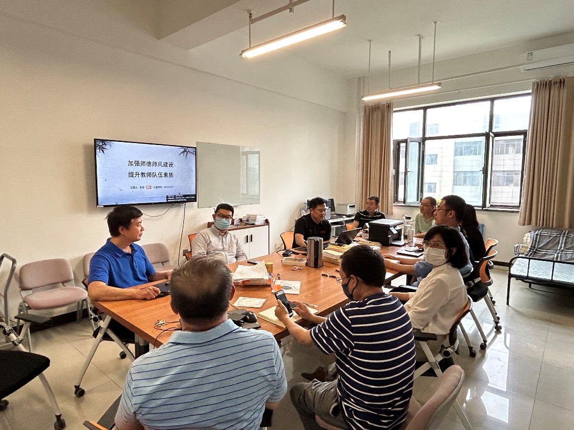 2023年5月30日,软件工程党支部在主楼E711A开展支部书记讲党课活动,支部书记彭文同志讲授关于《加强师德师风建设,提升教师队伍素质》的党课,学院党委委员焦润海和软件工程党支部全体党员听取了党课。