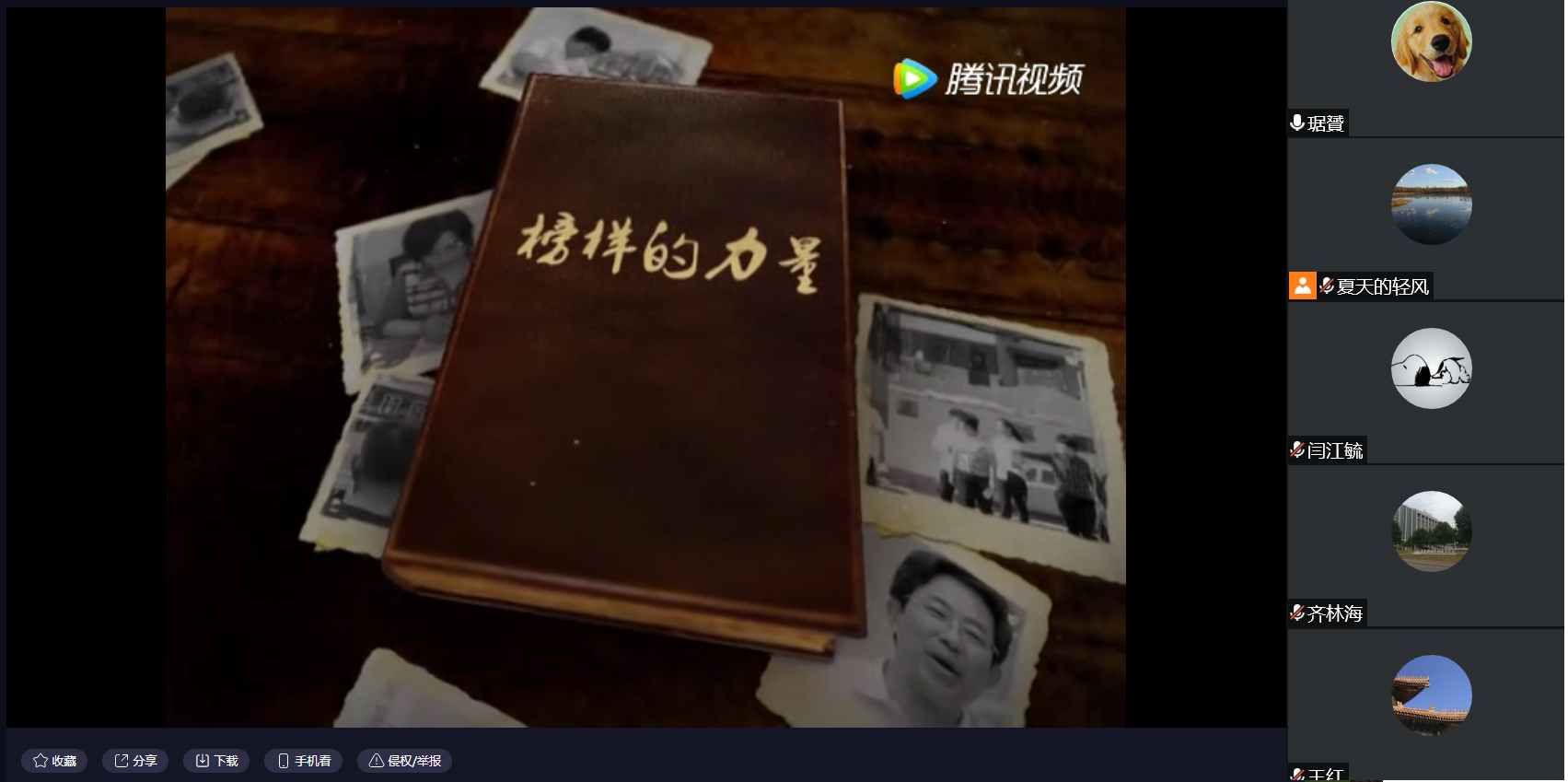 在今天党员活动日中,大家也联系自身,谈感受,作为我们华北电力大学的每一份子,2022年,支部将在学院党委的坚强领导下,以“三风”建设为契机,在落实落细学院教风和学风实施方案的同时,进一步强化作风建设,不断推动学院各项工作高质量、特色化发展,为高水平研究型大学建设贡献控计力量,以实际行动迎接党的二十大胜利召开!但面对《榜样》的力量,我们仍深深觉得自身有诸多不足,深感我们工作乐于担当意识不足、工作瞻前顾后患得患失、遇到困难钢性不足,工作安于现状,为此内心深感羞愧。夜以难寐、荡涤心灵,再以《榜样》重过“电影”,以内化于心外化于形: