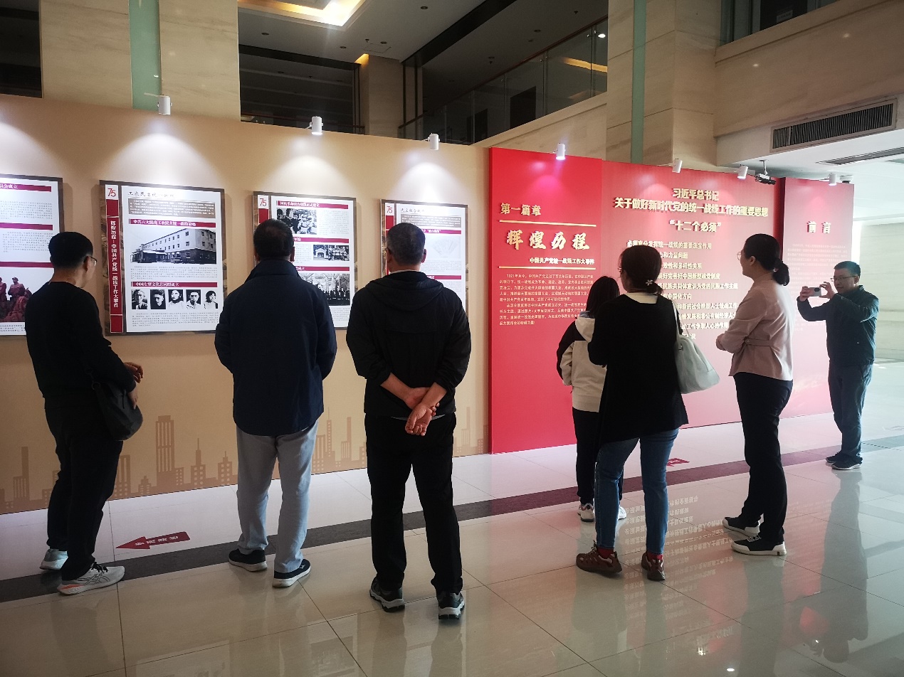 本次展览的内容主要包括中国共产党统一战线工作大事件、华北电力大学统一战线工作纪实两大主题内容,重点学习了习近平总书记关于做好新时代党的统一战线工作的重要思想“十二个必须”,然后又逐个展板学习观看了党在各个时期的统战工作的重点内容,以及我校统一战线工作内容及成效。