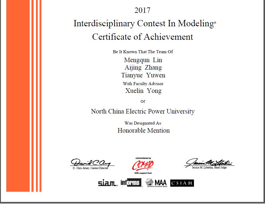 本人在大二期间学习成绩优异,综合测评成绩专业排名第一,在校担任校团委网络部信息中心主任,负责团委网站管理等事务,同时积极参加各类学科竞赛,获得美国大学生数学建模竞赛二等奖、全国大学生电子设计竞赛北京赛区二等奖、“电力科技杯”校赛铜奖奖项。
