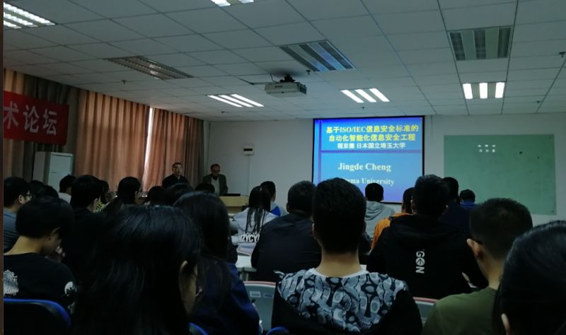 2018年4月23日14时30分,华北电力大学第250期“前沿&创新”学术论坛于主E1009成功举办。本次论坛主讲嘉宾为日本埼玉大学研究生院计算机科学的程京德教授,讲座主题是“基于ISO/IEC信息安全标准的自动化智能化信息安全工程”,讲座由控制与计算机工程学院研究生会外联部承办。