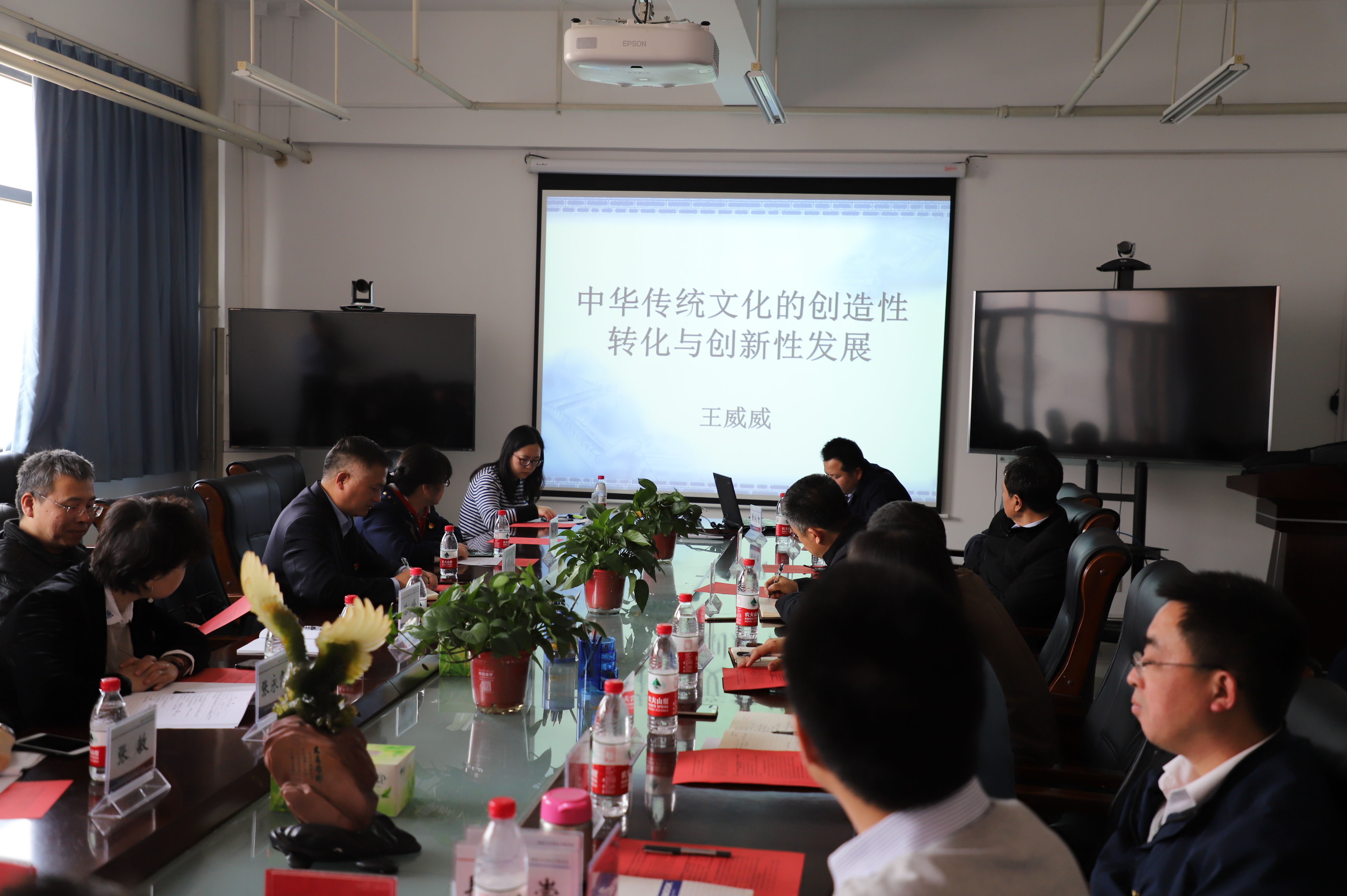 会议第一部分特别邀请了华北电力大学国学研究中心主任、法家研究中心副会长王威威教授为校企双方作了《中华传统文化创造性转化和创新性发展》的讲座。王威威结合党的十九大报告生动诠释了文化自信是一个国家、一个民族发展中更基本、更深沉、更持久的力量,并从核心思想理念、中华传统美德、中华人文精神三个维度提出了新时代如何推动中华优秀传统文化创造性转化、创新性发展问题。与会双方代表深受启发。