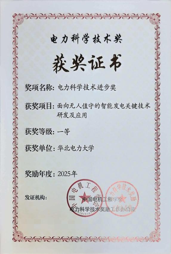 近日,中国电机工程学会年会在长沙召开,年会上举行了2025年中国电力科学技术奖颁奖仪式。华北电力大学作为第一完成单位完成的“面向无人值守的智能发电关键技术研发及应用”项目获得中国电力科学技术进步奖一等奖。其他完成单位包括国能智深控制技术有限公司,国家能源集团河北电力有限公司,国家能源集团新能源技术研究院有限公司,东南大学,国能河北定州发电有限责任公司等。我院曾德良教授、中国工程院院士刘吉臻教授、胡勇副教授为主要获奖人。