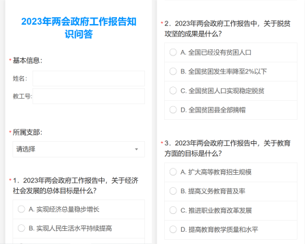 为了促进教师们对于两会政府工作报告的深入理解,4月3日,控制与计算机工程学院举行了一场知识问答活动,活动采用了便捷高效的问卷星形式,并向学院的教师们发放了问卷。