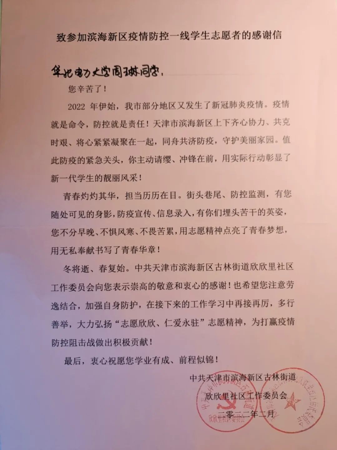 信安1901班班长郭文旭,作为疫情防控常态化工作的第一线学生干部,每周负责组织核酸检测时的秩序维持,核对检测同学名单,每天监督班里同学进行每日上报,这几乎是返校以来每个学生干部的日常。他表示,身为一名学生党员要有使命感、责任感和紧迫感,积极配合学校和学院的疫情防控工作,起好带头作用。服务师生,你我同行,传递爱心,点滴力量齐汇聚,同心抗疫待花开。