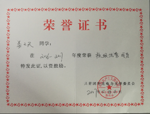 我担任了行政班(信安1601班)的班长,同时参加了校学生会权益部和院系学生会学习部的工作,做出了不少贡献。最使我感到幸运的是,我找到了权衡学习和工作的方法,没有出现顾此失彼的状况。虽然兼顾两个方面比较辛苦,但在这个过程中,我收获了宝贵的工作经验和人际交流经验,锻炼了组织能力和协作能力,而工作带来的成就感对学习是很好的促进作用。另外,我的工作得到了肯定,获得了校级优秀团员的称号。