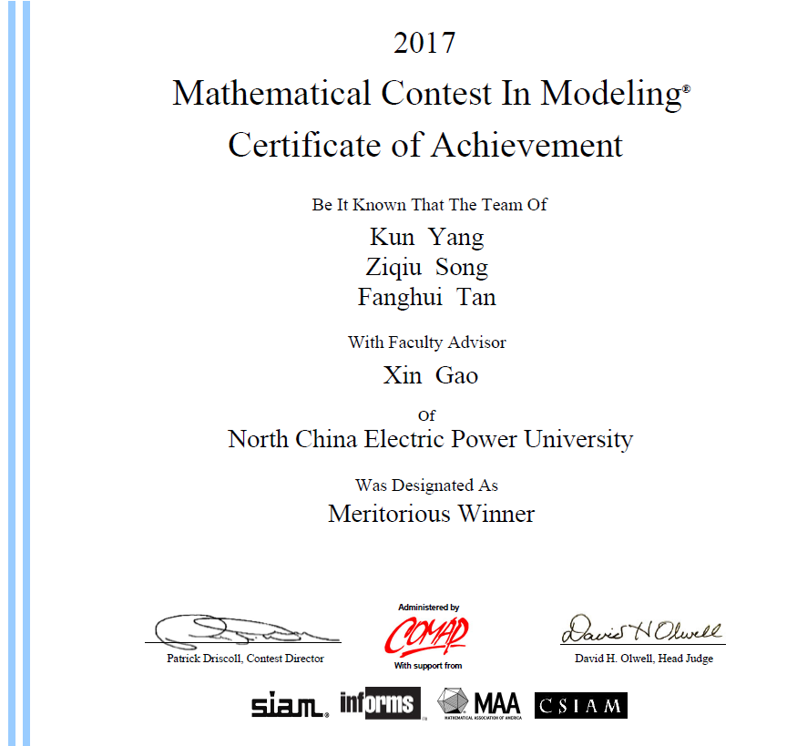 美国大学生数学建模竞赛一等奖