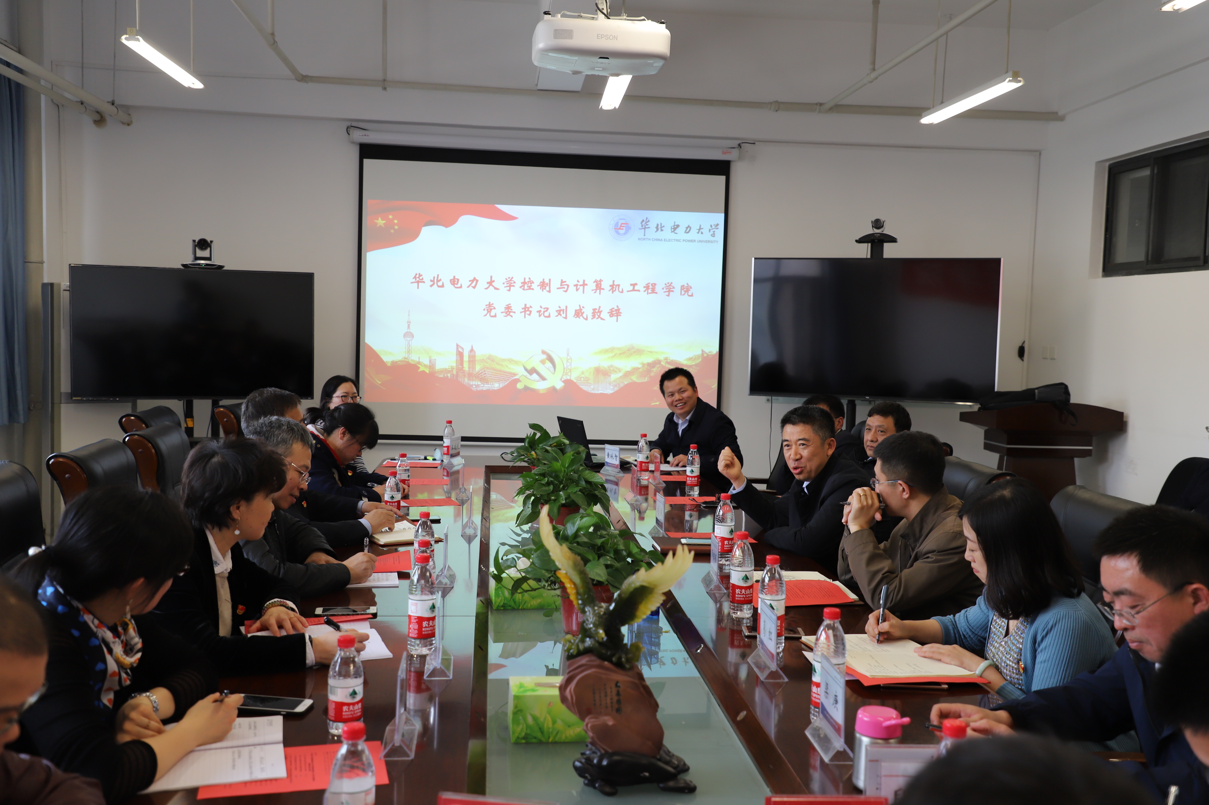 最后,国电智深公司第四党支部安凤栓同志代表智能技术部介绍了公司在智能发电领域最新的研究进展和技术需求,控制装置与系统教研室全体教师一一介绍各自的研究方向和成果,双方在智能发电优化控制等领域开展了深入的探讨,初步确定了拟进行科研合作的具体方向。
