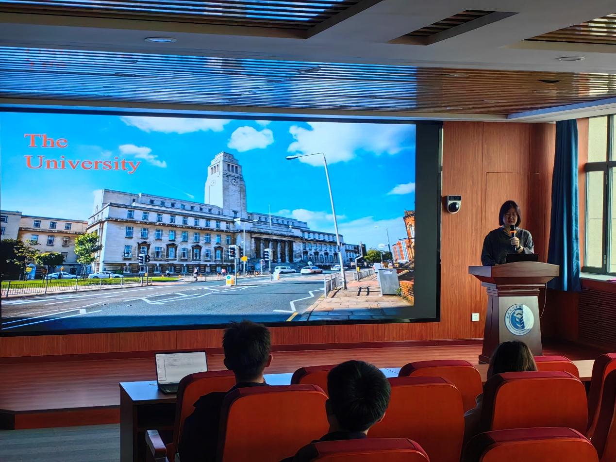 ,并在主楼E508报告厅为同学们举办了一场利兹大学本硕博留学项目宣讲会。宣讲会由利兹大学国际处潘璐老师主讲,我院分管国际合作交流副院长王玮主持,拟申请利兹大学留学项目的20余名同学参加。