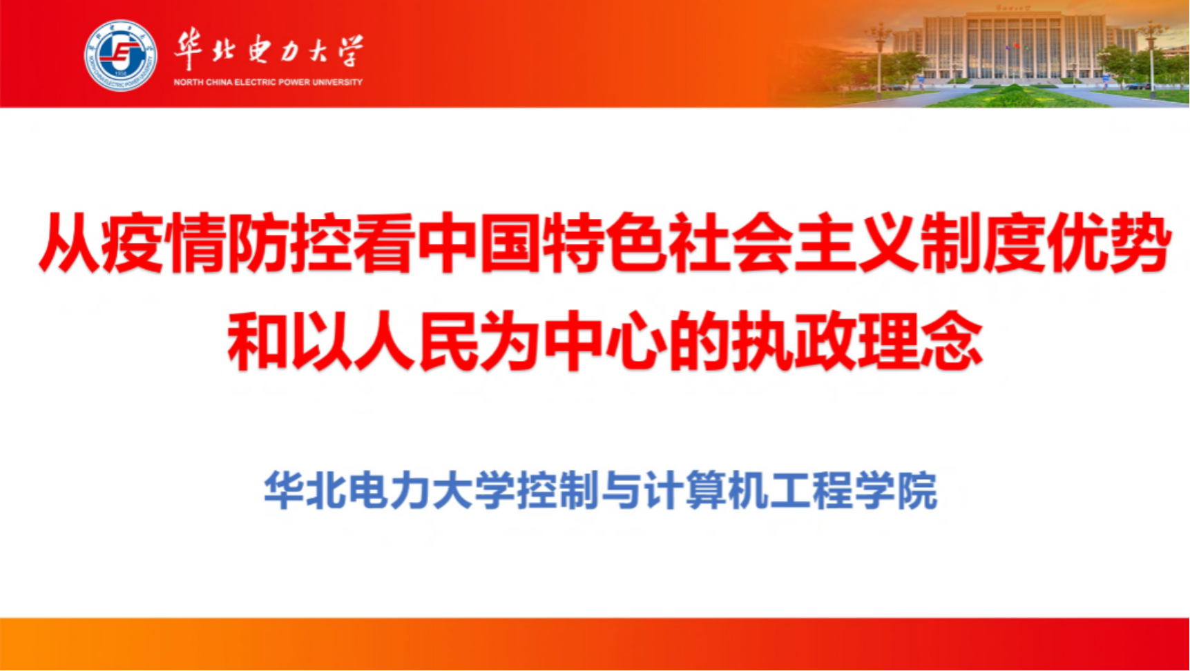 为进一步学习领会习近平总书记关于疫情防控重要讲话和指示批示精神和中国共产党以人民为中心的执政理念、中国集中力量办大事的制度优势,6月30日下午14:00,控制与计算机工程学院党委书记孟大伟以《从疫情防控看中国特色社会主义制度优势和以人民为中心的执政理念》为题,为学院全体师生党员讲授了疫情防控专题微党课。