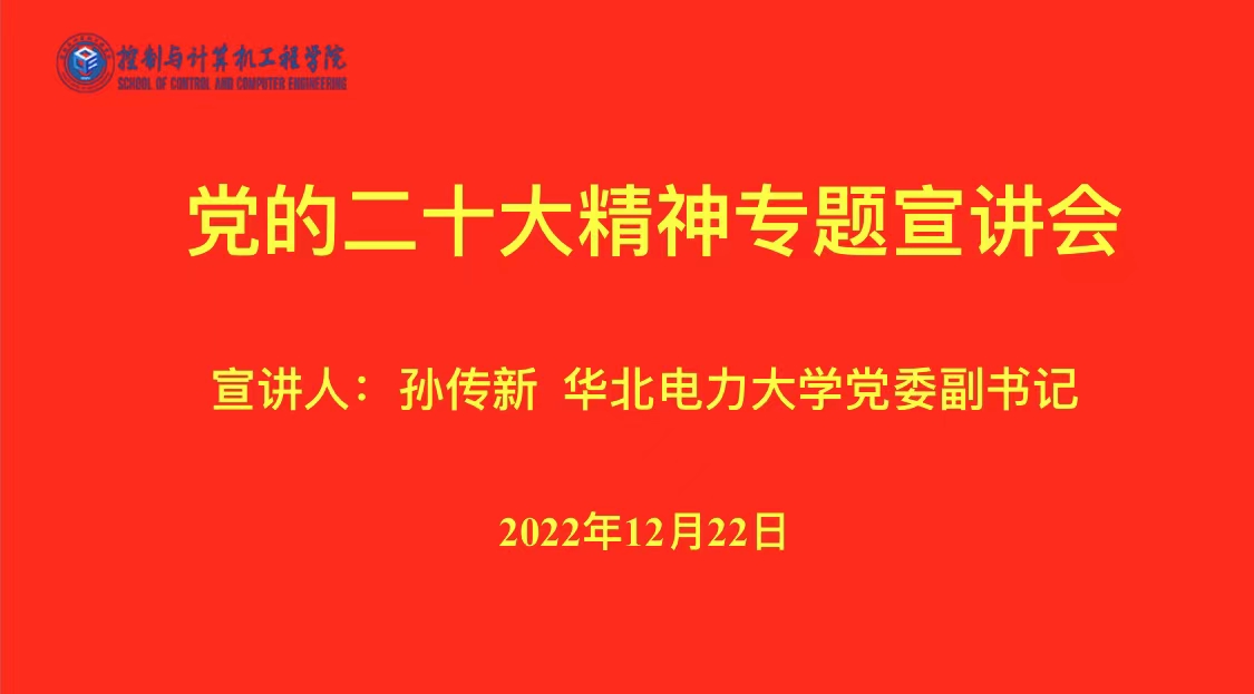 为深入学习贯彻党的二十大精神,进一步推动党的二十大精神入脑入心,12月22日上午,校党委副书记孙传新为h小说 师生作党的二十大精神专题宣讲。学院党委理论学习中心组全体成员、师生党员、高层次人才、党外代表、青年教师参加了此次宣讲会,会议由学院党委书记王韶华主持。