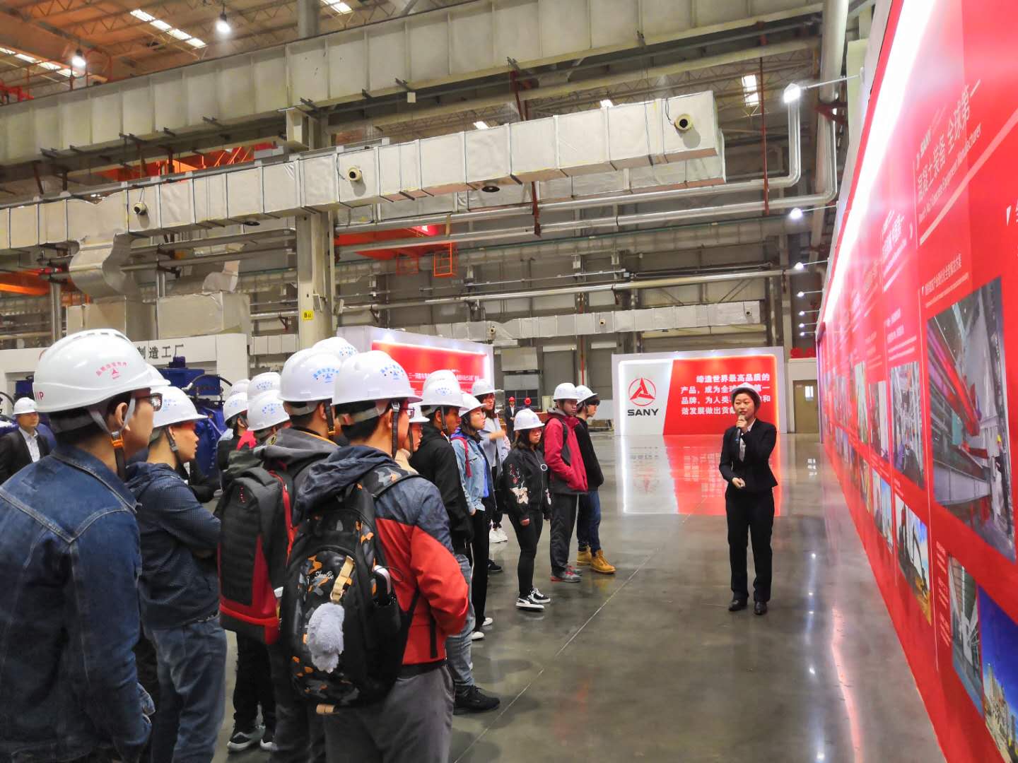 参观开始前学院师生首先通过展板了解了三一重工的历史发展和h小说。20世纪80年代的中国正处在第二轮改革的发轫期,湖南省七星镇洪源机械厂里的大学生梁稳根,和他几个志同道合的伙伴毅然辞去了安稳的工作,怀抱着做中国经济试验田的理想开始了自己的实业报国之路:他们成立了涟源茅塘焊接材料厂,这便是今天三一集团的前身。自成立以来,三一集团秉持“创建一流企业,造就一流人才,做出一流贡献”的企业宗旨,打造了业内知名的“三一”品牌。今天,三一重工已经发展为中国最大、全球第五的工程机械制造商,也是全球最大的混凝土机械制造商,业务和产业基地遍布全球。