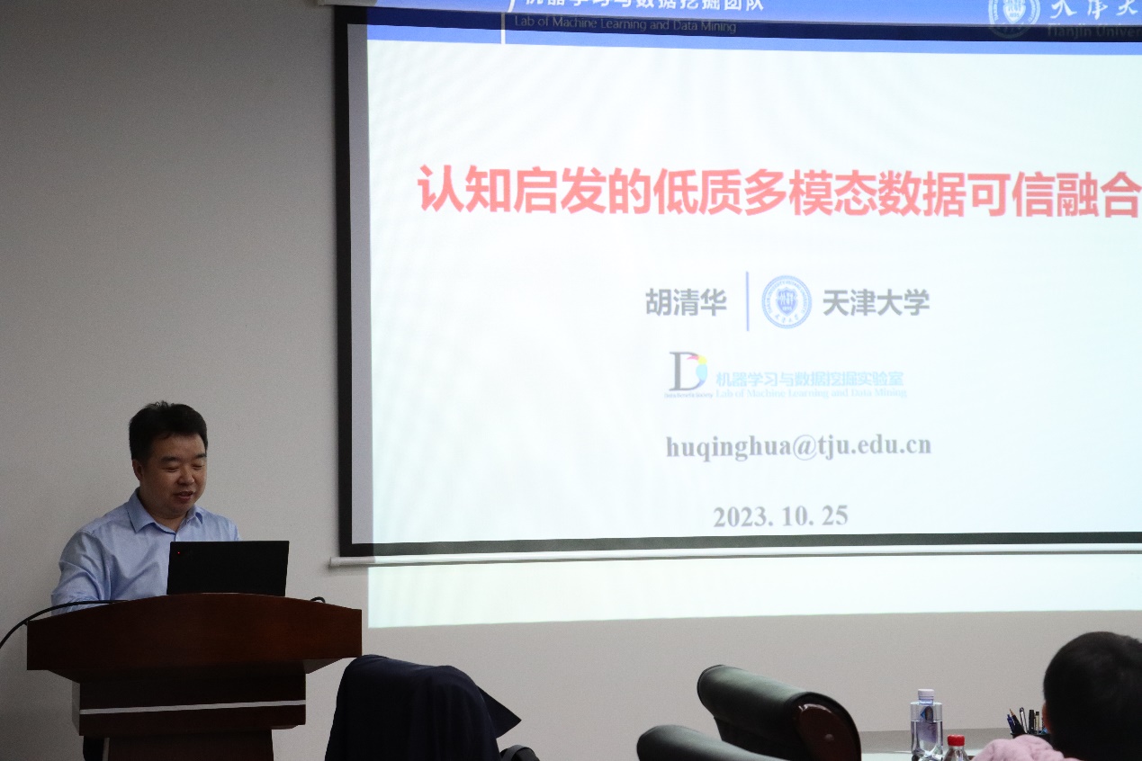 2023年10月25日,天津大学教授胡清华老师应邀到我院进行访问,并在学院E606会议室开展了学术讲座。此次讲座由人工智能与物联网工程教研室师瑞峰主持,数理学院人工智能方向陈德刚、车晓雅等老师及20余位研究生共同参加了交流。
