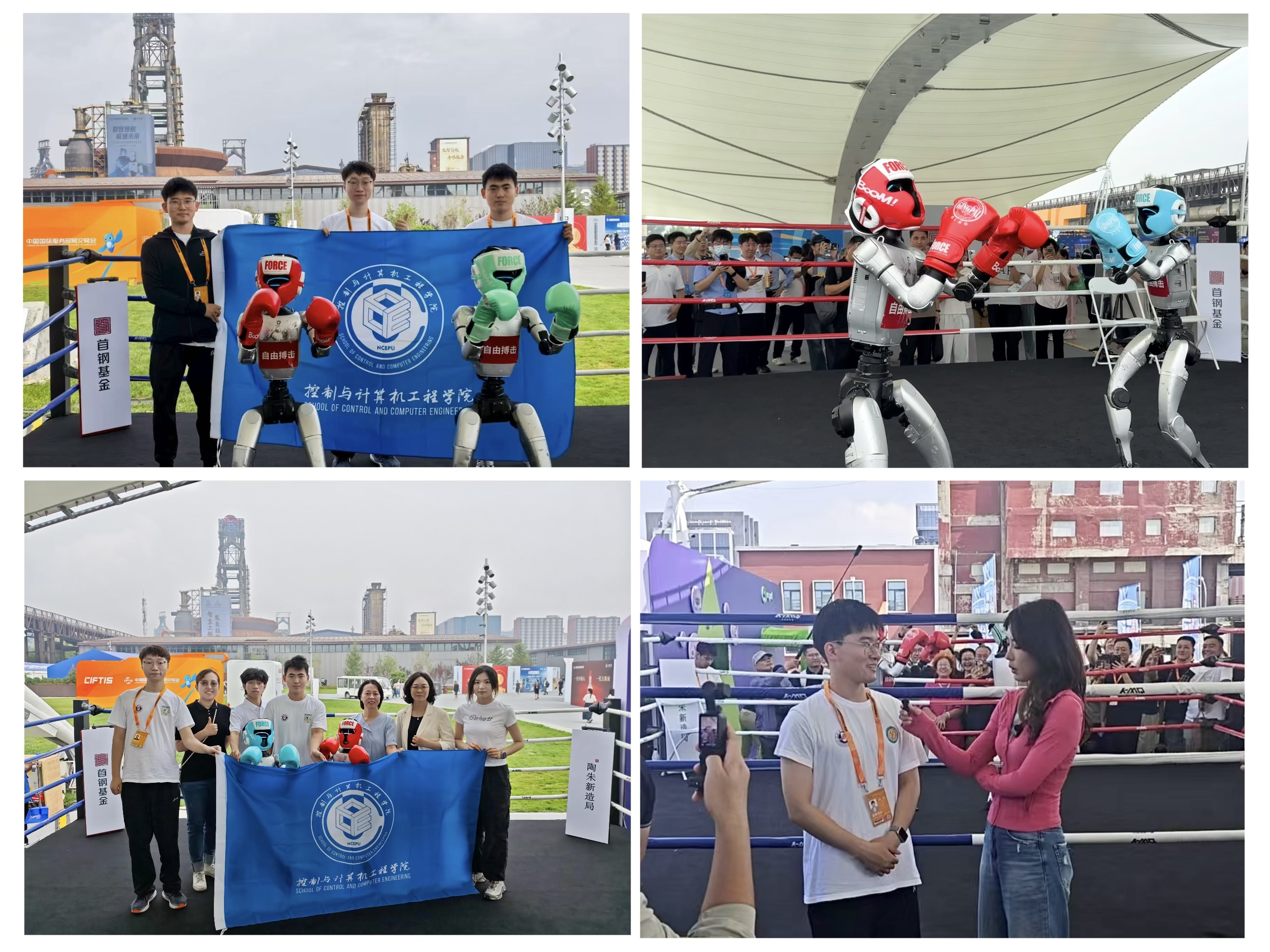 2025年9月10日,以"数智领航,服贸焕新"为主题的中国国际服务贸易交易会在北京首钢园隆重开幕。我校控制与计算机工程学院“铁甲钢拳队”在杨国田、李新利、于磊老师的指导下,由林斌、李梓敖、高鑫、许春山等同学组成参赛团队,凭借在人形机器人自由搏击赛中的优异表现,受邀参加此次科技盛会。