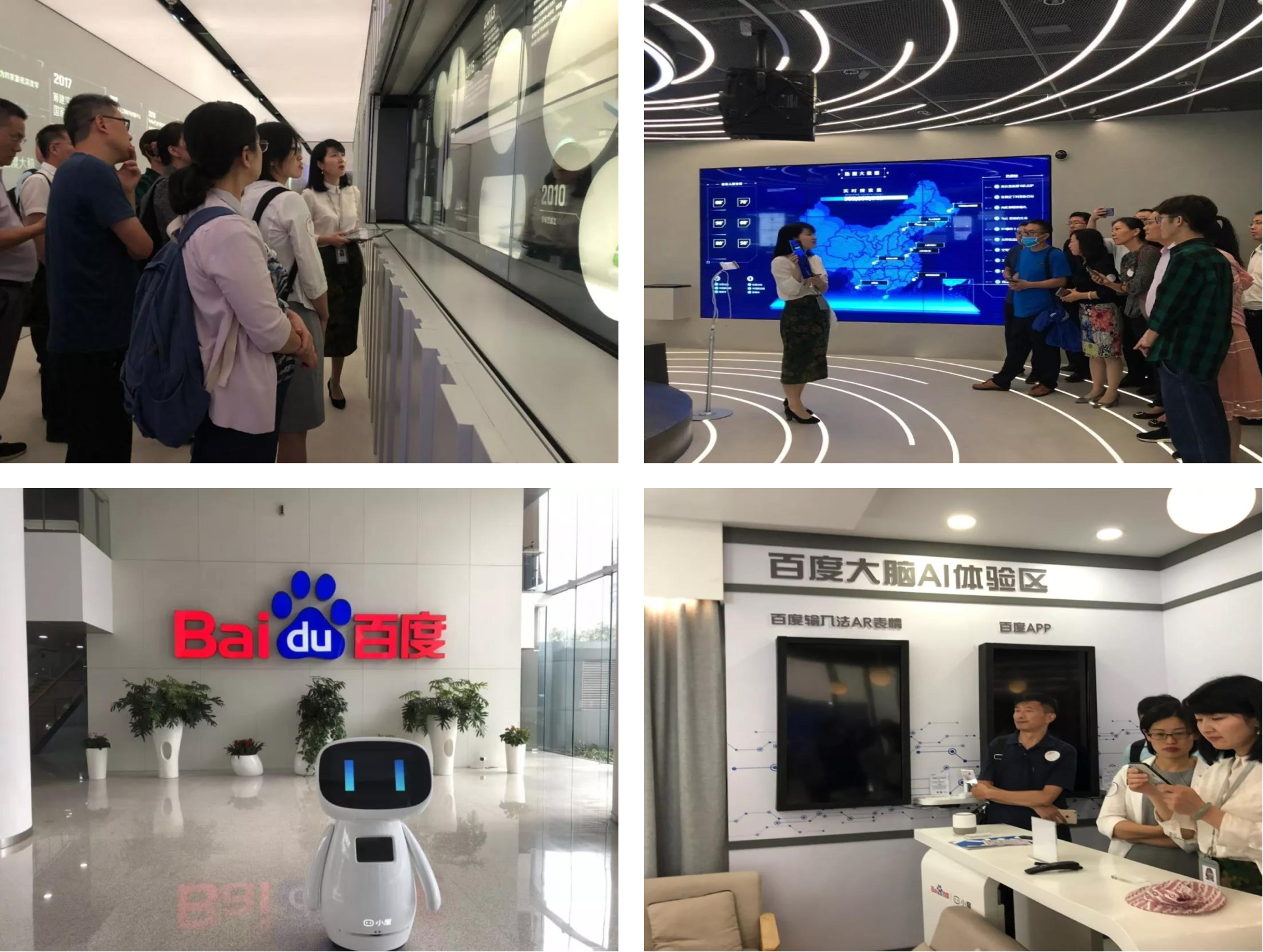 首先,大家参观了百度科技与文化展厅,与百度智能机器人小度互动,体验百度大脑AI,了解了百度发展历程、公司文化以及百度在人工智能等领域的成就。